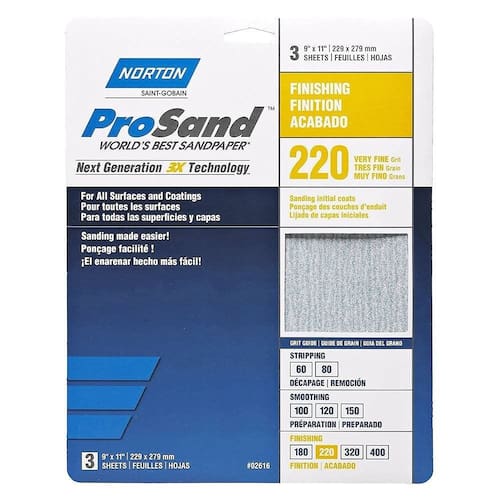 Norton Co. 2616 Norton 02616 3X Lixa prática de óxido de alumínio 220, 22 x 28 cm, pacote com 3, 1 pacote, sem cor, 3 unidades