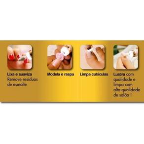 01 Lixa de Unha Elétrico Portátil Manicure & Pedicure 01 Cone Removedor de cutila 01 Cone Arredondado 01 Polidor Arredondado 01 Cone Agudo de Precisão 01 Polidor de Unhas Marca: Salon Nails Ean: 7820099002807