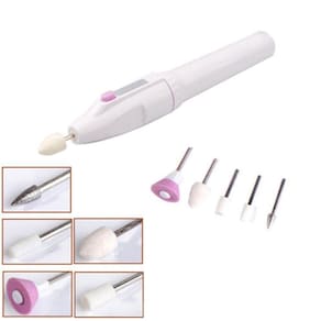 Funções da lixa de cinco acessórios: 1 Cone de metal: Remova a pele morta, calosidades e calosidades. 2. Tambor de moagem: Nivela e alisa pregos grossos e superfícies onduladas. 3. Cone de moagem pequeno: entalhe nos cantos e pontos de difícil acesso. 4. Cones de feltro suave: polir as unhas que têm um brilho saudável, estimular as cutículas e estimular a circulação das unhas para promover o crescimento das unhas. 5 Cabeças de esmeril planas: dê forma profissional às unhas e dê o acabamento com uma borda lisa e macia. Marca: Moon'S
