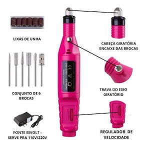 Lixadeira Lixa Motor de Unha Elétrica para unhas naturais, unhas de porcelana, unhas de gel ou acrygel. A lixa possui controle de velocidade, para melhor segurança e eficácia no trabalho, com rotação de 3.000RPM à 20.000RPM. Qualidade Profissional e acabamento perfeito nas unhas postiças, naturais ou gel. Recomendada também, para unhas postiças, tanto tips como as unhas de acrílico e gel. Multiuso: Talha, Gravura, Roteamento, Moagem, Afiação, Lixamento, Polimento, Perfuração e muito mais.. Design Leve para trabalho Voltagem: Bivolt 110v / 220v