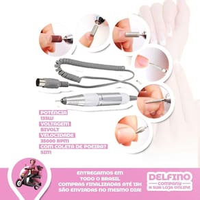 Itens Inclusos: 1 - Motor 1 - Caneta 1 - Pedal 1 - Copinho 1 - Suporte 1 - Conjunto Lixa e brocas 6 lixas e 6 brocas Marca: Lixar Unhas Profissional Ean: 7904586126365