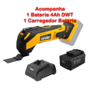 Conteúdo da Embalagem: 1 Lixadeira multifunção 18V IMFV 1817 com Bateria 18V lítio 4 Ah IBD 1804 DWT + 1 carregador de bateria VONDER