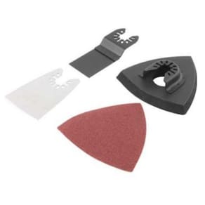1 Lixadeira multifunção, acompanha: 1 base para lixa 90 mm x 90 mm x 90 mm, 1 lixa (grão 80), 1 lâmina raspadora e 1 lâmina de serra para madeira ou drywall.