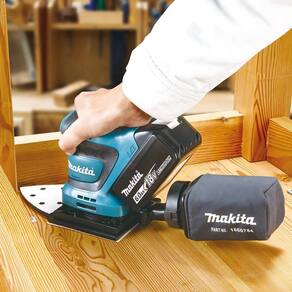 Conteúdo da embalagem: 1 Lixadeira Orbital Sem Fio 18V 14000 Orbitas por Minuto Com Saco Coletor e Acessórios DBO480Z Makita