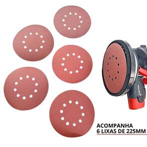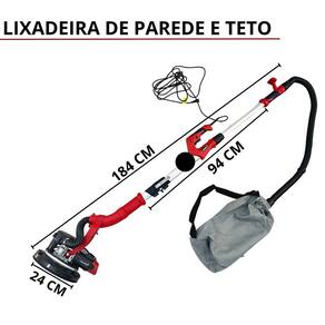 Itens inclusos: 1 Lixadeira de Parede e Teto, 1 Mangueira, 1 Saco de Pó, 6 Discos de Lixa, 1 Manual (português)