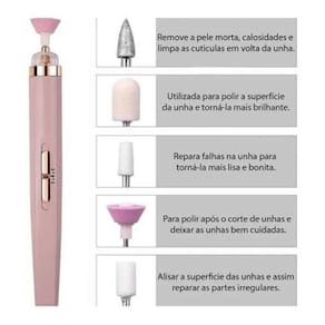 A lixa de unha elétrica recarregável e portátil, facilita o uso a qualquer hora removendo a pele ressecada e áspera, diminui as calosidades e ainda deixa suas unhas lindas, brilhosas e perfeitas. Por ter um formato de caneta, ele se adequa perfeitamente às mãos possibilitando um acabamento perfeito.