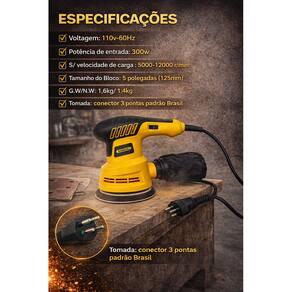 O equipamento conta com empunhadura que favorece o controle durante o uso e sistema de coleta de pó, contribuindo para um ambiente de trabalho mais organizado. Acompanha discos de lixa para uso imediato.