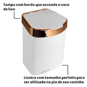 Fabricada em plástico e com tamanho compacto, a Lixeira é ideal para ser deixada sobre a pia ou a bancada. Sua tampa removível permite deixar o saquinho de lixo fixo e não aparente.