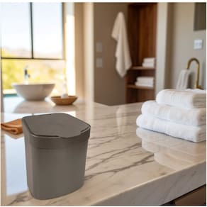 A Lixeira tem capacidade para 2,5L. Com tampa removível, fica fácil trocar o saquinho de lixo, além de deixá-lo fixo e escondido sob a borda da tampa.