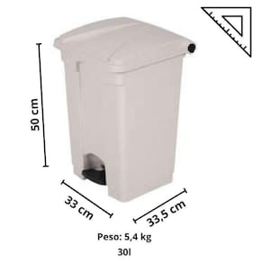Lixeira retangular para saco de lixo 30 litros.Fabricamos esta lixeira em polietileno ou em polipropileno.proteção UV 8( raios solar )Abertura da tampa por pedalHaste para abertura da tampa e plástico reforçadoLixeira com travas para prender saco de lixo