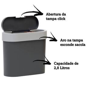 A Lixeira Flat é ideal para cozinhas pequenas onde há pouco espaço na bancada. Com design compacto, ela tem capacidade para 2,8 litros e seu formato retangular e arredondado permite que ela se encaixe em qualquer espaço. A tampa tem sistema de abertura e formato mais retangular, o que facilita no descarte de alimentos. O corpo possui aberturas laterais para encaixe da sacola plástica e o aro da tampa esconde a sacola, deixando o visual mais limpo. Bicolor, ela está alinhada com as tendências de Design que apresenta produtos em duas cores, permitindo combinações com diversos ambientes.