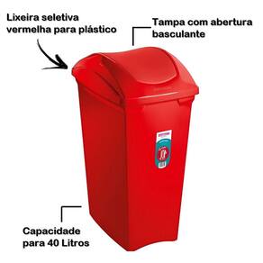 LIXEIRA 40 LITROS SELETIVA VERMELHA PARA PLÁSTICO