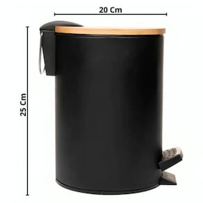 Garantia: 90 dias / Peso de cada: 890g / Cor: preto / Referência: 7908122202261; Dimensões: 20cm (D) x 25cm (A); Capacidade: 5L; Conteúdo: 1 lixeira redonda e balde; Material: metal, plástico e bambu. Limpeza e cuidados: - Limpar com água e sabão neutro utilizando esponja macia, seguido de pano seco; - Não utilizar produtos químicos ou abrasivos na limpeza; - Evitar batidas e contato com objetos cortantes.