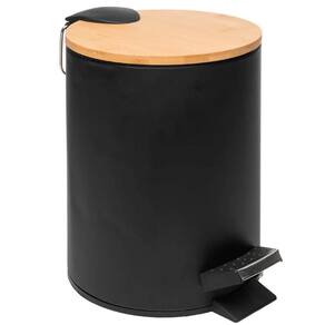 Lixeira 5L Metal Redonda com Pedal Preta Tampa Bambu Balde Interno Banheiro.