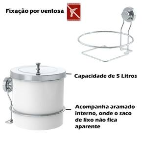 01 - Lixeira 5 Litros Com Suporte de Fixação por Ventosa