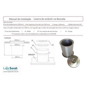 Lixeira 5LTS 20X25CM Pia Cozinha Embutir No Granito Em Inox Cor: Preto Fosco LIXEIRA PARA EMBUTIR NO GRANITOTAMPA EM INOX PRETO FOSCO Lixeira em p/ embutir no granito tampa faceada com a bancada Tamanho : Medida DO FURO NA BANCADA 20CM BALDE LIXEIRA 18,5cm diametro x 24cm alturaCapacidade - 5ltsTampa e aro de acabamento do furo em Inox 304 - Balde e aro interno para segurar o saquinho de lixo em AluminioNão enferruja