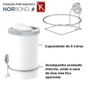 Lixeira perfeita para compor a sua cozinha, pois possui um lindo suporte com fixação por meio de adesivo, tornando o produto muito prático e versátil. A fixação por adesivo garante uma excelente fixação e permite fazer a instalação sem o uso de ferramentas. Possui tampa com abertura basculante, permite deixar o saquinho de lixo fixo e não aparente, já que possui um aramado interno.