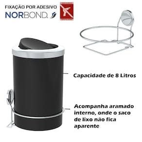 01 - Lixeira 8 Litros Com Suporte de Fixação por Adesivo
