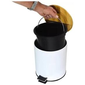 Lixeira 3 Litros Branca Com Pedal E Tampa De Bambu Redonda