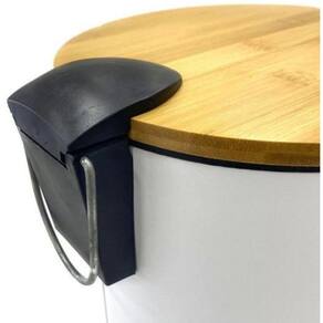 Lixeira Aço Inox 3L Pedal Bambu Branca