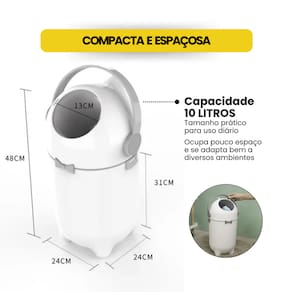 Com capacidade de 10 litros, é compacta e funcional, perfeita para banheiros, quartos, escritórios ou cozinhas menores.