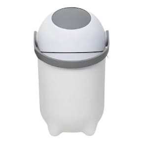 Produzida em Polipropileno na cor branca, com alça abre e fecha, possui formato cilíndrico, trava de segurança e capacidade de 10L. Fácil de desmontar para descarte do lixo.