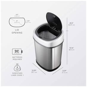 Materiais de alta qualidade: O sensor de movimento infravermelho resistente à água evita que a umidade ou qualquer derramamento acidental danifique a unidade. Além disso, a base de aço inoxidável resistente à impressão digital ajuda a manter a lata limpa. Tecnologia avançada: A tecnologia de detecção de atraso preserva a vida útil da bateria e evita qualquer abertura desnecessária de animais de estimação, crianças ou passa por aqui. Função de fechamento suave para a longividade da vida útil do produto. Eliminar a contaminação cruzada de germes. Requer 2 baterias C não incluídas, bateria alcalina altamente recomendada para melhor desempenho. Ease e Convenient: O forro de anel removível mantém o saco de lixo resistente no lugar e evita que o saco fique pendurado para uma aparência limpa e limpa. Use quaisquer sacos de lixo padrão ou sacos de lixo personalizados NINESTARS NSTB 3 30.