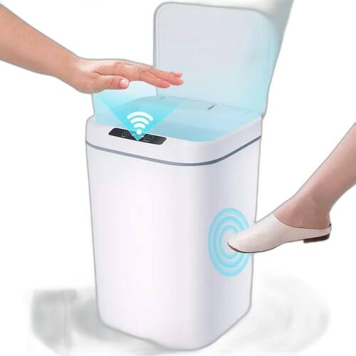 Lixeira Automática com Sensor Inteligente para Escritório Recarregável 16L Essa lixeira inteligente abre e fecha a tampa automaticamente. O acionamento de abertura pode ser acionado de 3 formas, sendo: - Indução: Ela identifica sua mão para abrir a tampa; - Toque/Vibração: Você pode tocar o cesto com o pé e ela abre; - Manual: Você aperta o botão e ela abre/fecha.