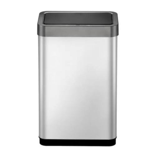 De aço inoxidável resistente à impressão digital escovado. Grande capacidade e design que economiza espaço. Interface amigável e simples para a operação conveniente e fácil. Aro removível para saco plástico que não deixa o saco visível. Requer 6 pilhas aa não incluídas .