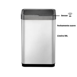 Lixeira automática Lixeira automática sensor abre 50 l aço inox importada. Feche a tampa de forma suave e fácil.