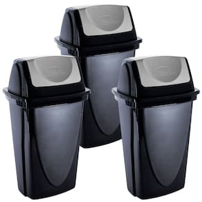 Conjunto com 3 lixeiras. A lixeira com tampa basculante é a solução ideal para manter seus ambientes limpos e organizados com praticidade e estilo. Com capacidade para 14 litros, esta lixeira é perfeita para uso doméstico ou em ambientes comerciais, como escritórios, cozinhas, banheiros e áreas de serviço. Fabricada em plástico de alta qualidade, a lixeira é durável e resistente, garantindo um uso prolongado e eficiente. A tampa basculante tipo vai e vem oferece conveniência e higiene, permitindo que você descarte o lixo de maneira rápida e fácil, sem a necessidade de tocar diretamente na tampa. Este mecanismo mantém os odores controlados e impede a visualização do conteúdo interno, contribuindo para um ambiente mais limpo e agradável. Além disso, a lixeira conta com proteção contra raios UV, o que assegura que a cor e a qualidade do material permaneçam intactas mesmo quando exposta à luz solar. Essa característica torna a lixeira ideal tanto para ambientes internos quanto externos, garantindo sua durabilidade e estética ao longo do tempo. Com um design moderno e compacto, a lixeira se adapta perfeitamente a qualquer decoração, ocupando pouco espaço e oferecendo grande capacidade de armazenamento de resíduos. A lixeira de 14 litros é ideal para atender às necessidades diárias de descarte de lixo, seja em casa ou no trabalho. A Lixeira é fácil de limpar, permitindo que você mantenha a higiene e a aparência do produto com pouco esforço. Seu material resistente é projetado para suportar o uso diário, garantindo que a lixeira permaneça funcional e esteticamente agradável por muito tempo. Material: polipropilenoCapacidade: 14 litrosComprimento: 27 cm / Largura: 22 cm / Altura: 47 cm