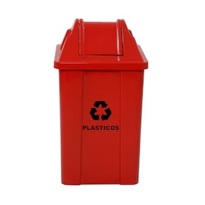 Lixeira Coleta Seletiva acompanha adesivo, com a tampa basculante (estilo vai e vem) possui superfície polida para facilitar a higienização e evitar o acúmulo de sujeira, não permitindo contato direto com o lixo.
