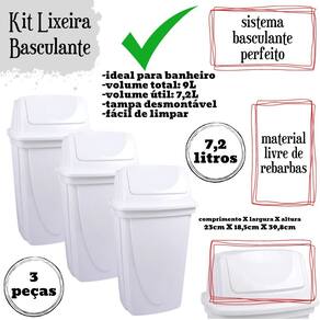 Lixeira basculante 7,2 litros branca com 3 unidades Plasutil ref.4744