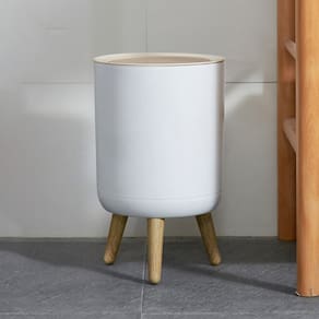 A Lixeira Click não é apenas um recipiente para resíduos, é uma peça de design sofisticado. Seu corpo em polipropileno, robusto e durável, se harmoniza perfeitamente com a tampa e os pés, todos imitando a textura natural da madeira. Com uma capacidade de 8 litros, é a combinação ideal de forma e função.