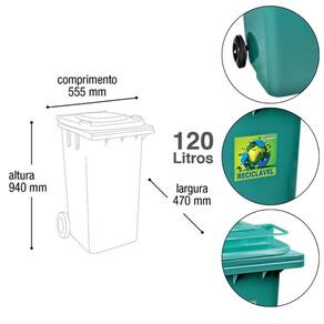 Lixeira Cesto Grande 120 Litros Com Tampa com Alça Cor Verde Se você busca uma lixeira grande, resistente e funcional, essa de 120L é a escolha certa Ideal para empresas, condomínios, áreas de grande circulação e até para uso doméstico.