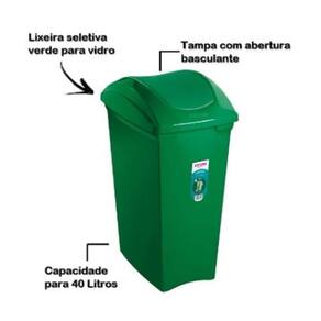 Lixeira Cesto Plástico Seletiva Verde 40 L Basculante