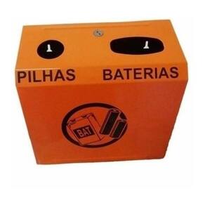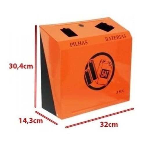 Lixeira coletor para descarte de pilhas e baterias Cor: preto e laranja Coletor de parede para descarte de pilhas e baterias