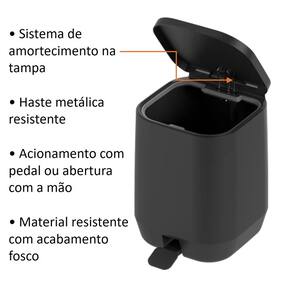 A lixeira de pedal Ou da Linha Aura conta com sistema Soft Closing, que garante fechamento suave e silencioso. Compacta e funcional, é perfeita para banheiros e espaços menores. Possui haste metálica resistente para maior durabilidade e pode ser acionada com o pé ou mão, trazendo versatilidade ao uso. Seu aro resistente mantém o saco de lixo no lugar, o que garante organização e um visual limpo.