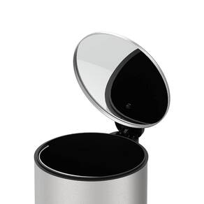 Característica-3 - MATERIAIS: a Lixeira com Pedal e Balde 3L da Spin/Brinox tem alta durabilidade, é fabricada em Aço Inoxidável escovado. O produto conta com alça para transporte e balde removível para acomodar o saco de lixo. Com duplo sistema de acionamento, tem uma aba manual e pedal com base de aço inox. A tampa tem fechamento suave.