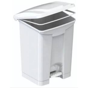 Lixeira com pedal polipropileno branca - 50 litros Produzida com resina de polipropilenoResistente a impactos Resistente a raios ultravioletas Cantos internos arredondados para melhor higienizaçãoAbertura c/pedalAro p/fixação de saco de lixo de 50lCor - branca Marca - polwax