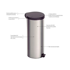 Material (tampa, pedal e base): Plástico preto.