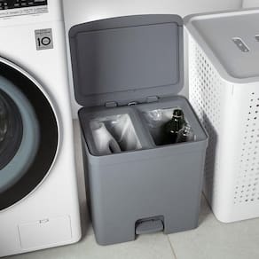 Lixeira com Pedal Trium 30 L com Duplo Compartimento Branco OuPromover um ambiente limpo, organizado e cheiroso é o segredo para uma sensação de satisfação e bem-estar. Por isso, é imprescindível que tenhamos sempre por perto uma lixeira que promova higiene, organização e beleza. Com design contemporâneo, moderno e minimalista, as Lixeiras de Pedal Trium foram desenvolvidas para solucionar problemas do cotidiano com mais praticidade e sustentabilidade. Sua capacidade de 30 Litros é ideal para diversos ambientes da casa ou escritório. Além disso, possui tampa especial que não deixa o saquinho de lixo exposto na parte externa da lixeira, e anel de fixação que proporciona mais segurança ao colocar o saco para lixo, trazendo mais sofisticação ao evitar que o saco fico aparente. Feita com material de alta qualidade e acabamento fosco, a lixeira garante a estabilidade e resistência necessária para o dia a dia. Leves, práticas de transportar e fácil de higienizar as Lixeiras Trium perfeitas para organizar diversos tipos de ambientes.