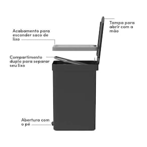 Lixeira com Pedal Trium 30 L com Duplo Compartimento Chumbo Ou - MedidasMedidas (compr. x larg. x alt.): 25,8 x 33,5 x 48,5 cm
