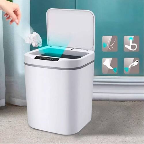 Lixeira com Sensor Inteligente Automática Recarregável Essa lixeira inteligente abre e fecha a tampa automaticamente. O acionamento de abertura pode ser acionado de 3 formas, sendo: - Indução: Ela identifica sua mão para abrir a tampa; - Toque/Vibração: Você pode tocar o cesto com o pé e ela abre; - Manual: Você aperta o botão e ela abre/fecha.