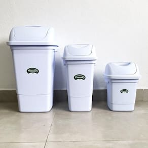 A Lixeira 14 Litros Plasvale possui tampa basculante e alça que facilita o manuseio, além de pega nas laterais no formato dos dedos, facilitando seu transporte.