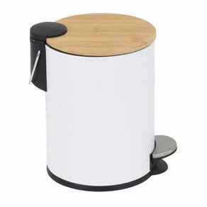 Especificações Técnicas: - Material: Ferro resistente, plástico polipropileno PP durável e tampa de bambu natural. - Capacidade: 5 litros. - Cor: Branco.