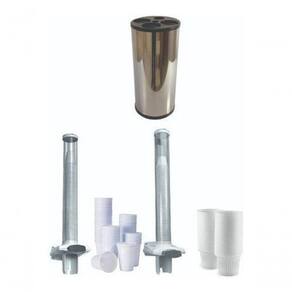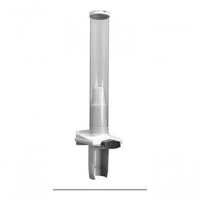 Tampa e base constituída em plástico abs e tubo confeccionado em pvc semi rígido.Possui dispositivo de fácil manuseio fazendo a liberação de um copo por vez.