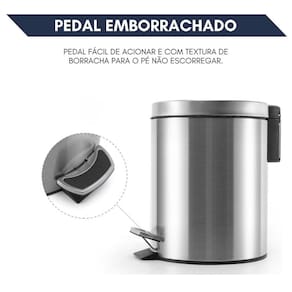 O que a torna ainda mais prática é seu pedal emborrachado antiderrapante, que permite abrir a tampa sem precisar tocar na lixeira, mantendo assim a sua higiene.