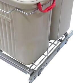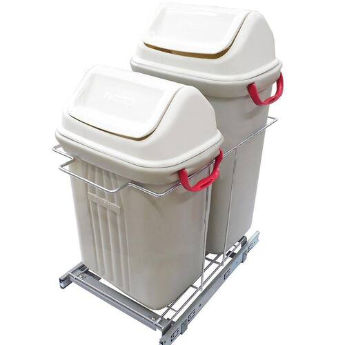 Lixeira de base dupla deslizante eco 49l cromado 8686 jomerEste produto é confeccionado em aço carbono com o acabamento cromado. Acompanha a lixeiras em plástico na cor bege, sendo a maior com capacidade de 30l e a menor com capacidade de 19l.Acompanha trilhos telescópicos, que vão montados junto a peça, perfeito para nichos em cozinhas com instalação de base.Os trilhos não entram na garantia dos produtos.Medidas totais: 320x620x510mmAltura tampa aberta 730mm
