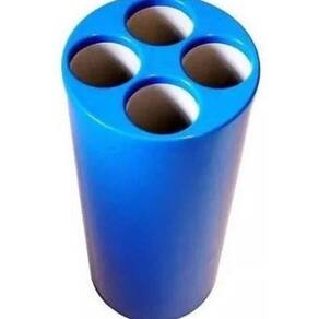 Com compartimentos tubulares produzido em plástico resistente para o descarte de copos de água. Mais praticidade e higiene para quem descarta e mais praticidade para quem recolhe.